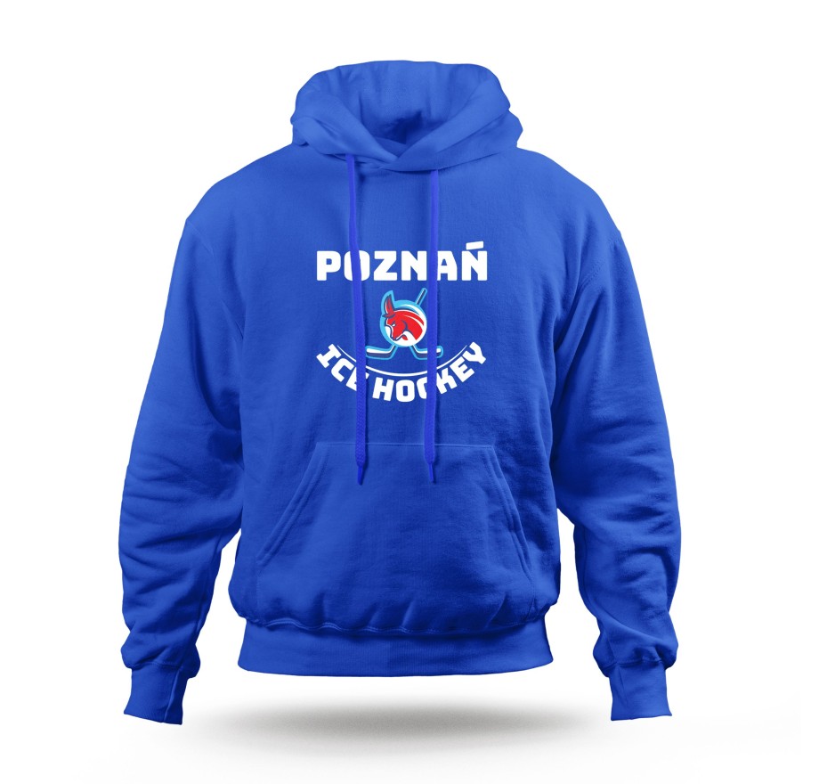 Wyrazisty niebieski kolor w połączeniu z logo PTH Koziołki Poznań oraz napisem „Ice Hockey” podkreśla sportowy charakter i przynależność klubową.