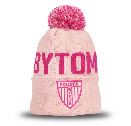 Czapka zimowa Polonia Bytom – Pink to oryginalna propozycja dla Pań które chcą połączyć klubowe wsparcie z modnym wyglądem.