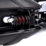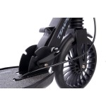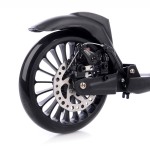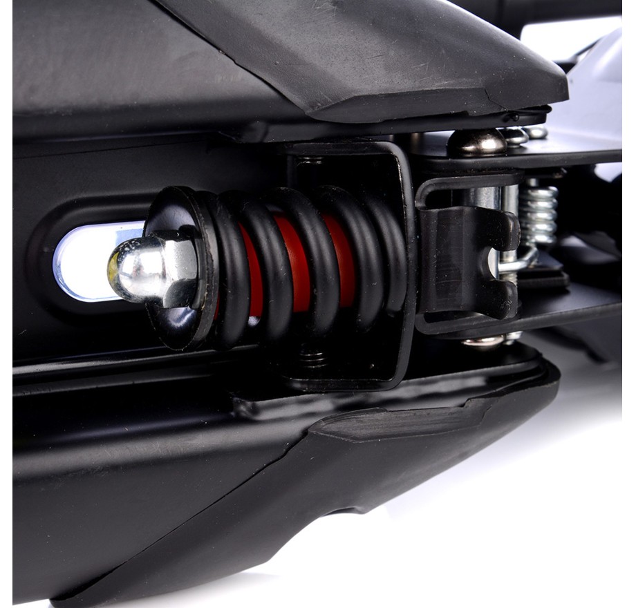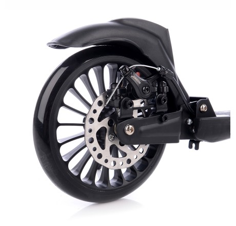 - Zarówno przednie, jak i tylne zawieszenie skutecznie tłumi drgania, a regulowane tylne zawieszenie pozwala dopasować hulajnogę do wagi użytkownika.