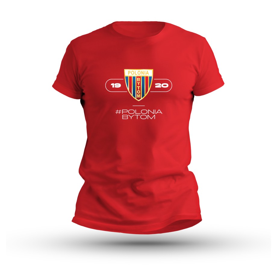 Czerwona koszulka klubowa z herbem Polonii Bytom