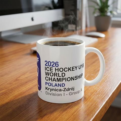 • Kubek IIHF U18 IA Krynica 2026 to stylowy gadżet związany z turniejem IIHF Ice Hockey U18 World Championship Division I Group A 2026 rozgrywanym w Krynicy Zdroju.