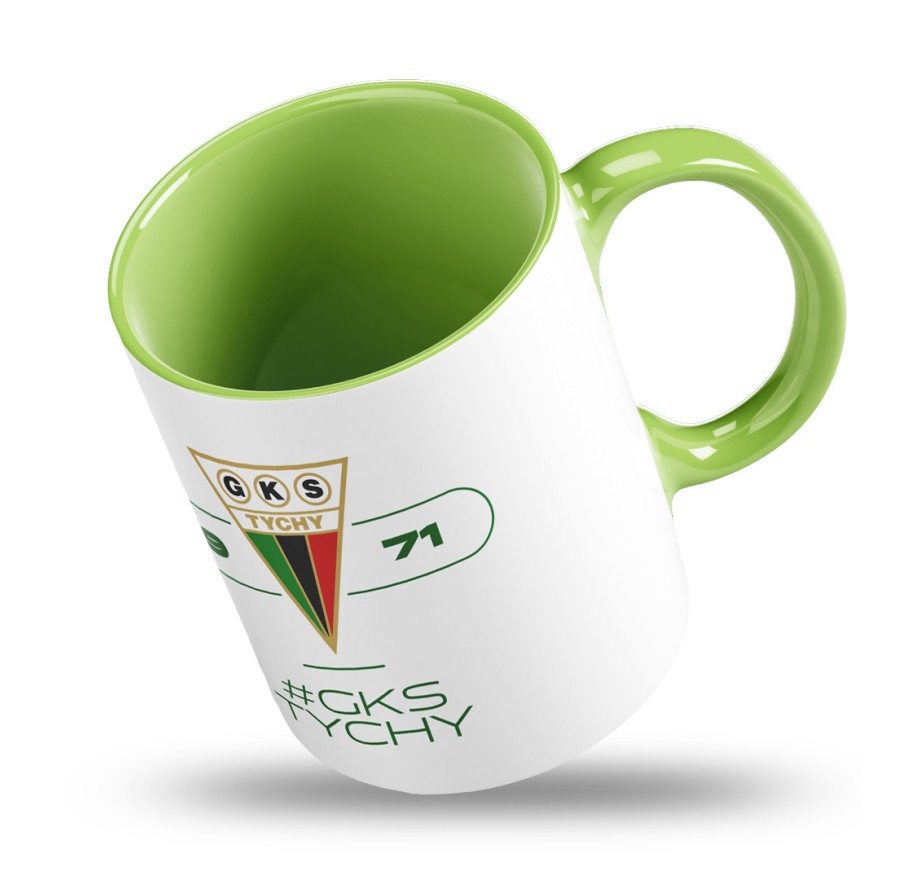 Stylowy kubek klubowy z herbem GKS TYchy i zielonym wykończeniem