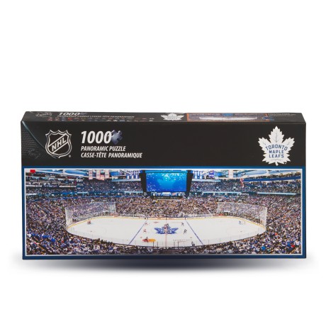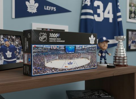 • Układanka o wymiarach 39" x 13" (99 × 33 cm) przedstawia realistyczną i szczegółową scenę z lodowiska Toronto Maple Leafs.