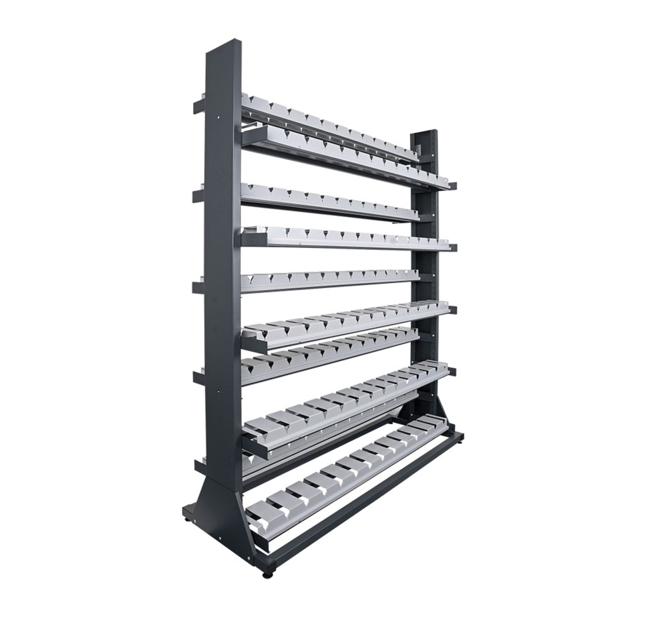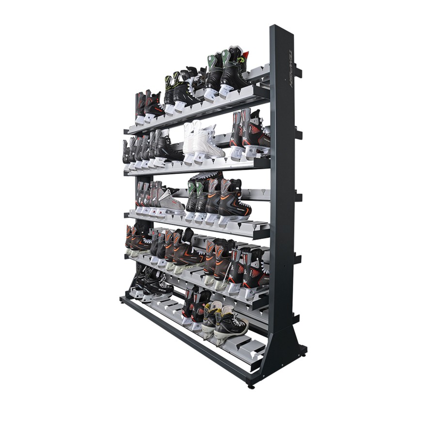 • Regał TEMPISH Zephyr S50 to dwustronny stojak zaprojektowany do pomieszczeń wypożyczalni i lodowisk, mieszczący aż 70 par łyżew zimowych.