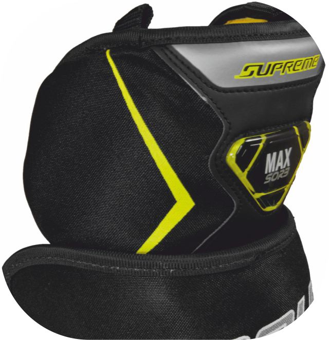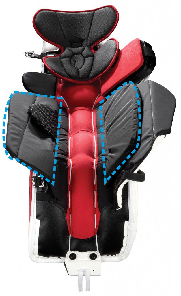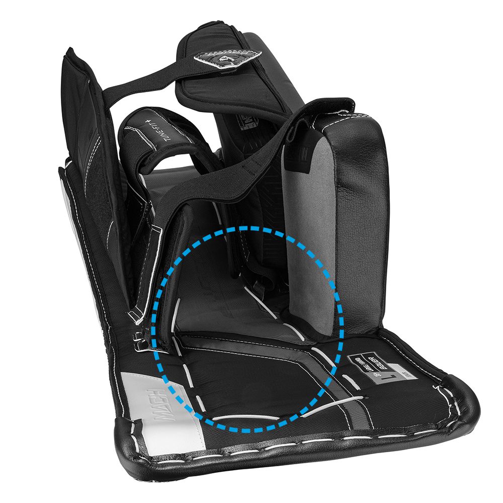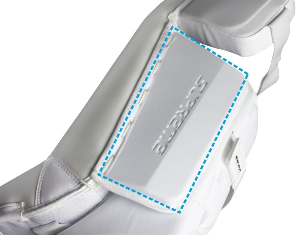 THIGH BOARDS - Płyta udowa – płaska klapa, która chroni górną część uda od wewnętrznej strony parkanu. Możliwość dopasowania jest bardzo wskazana, dzięki dobremu ustawieniu. Schodząc do pozycji „butterfly” płyty łączą się razem zasłaniając dziurę między nogami „Five-Hole”.