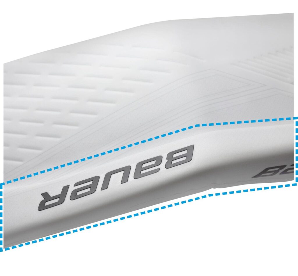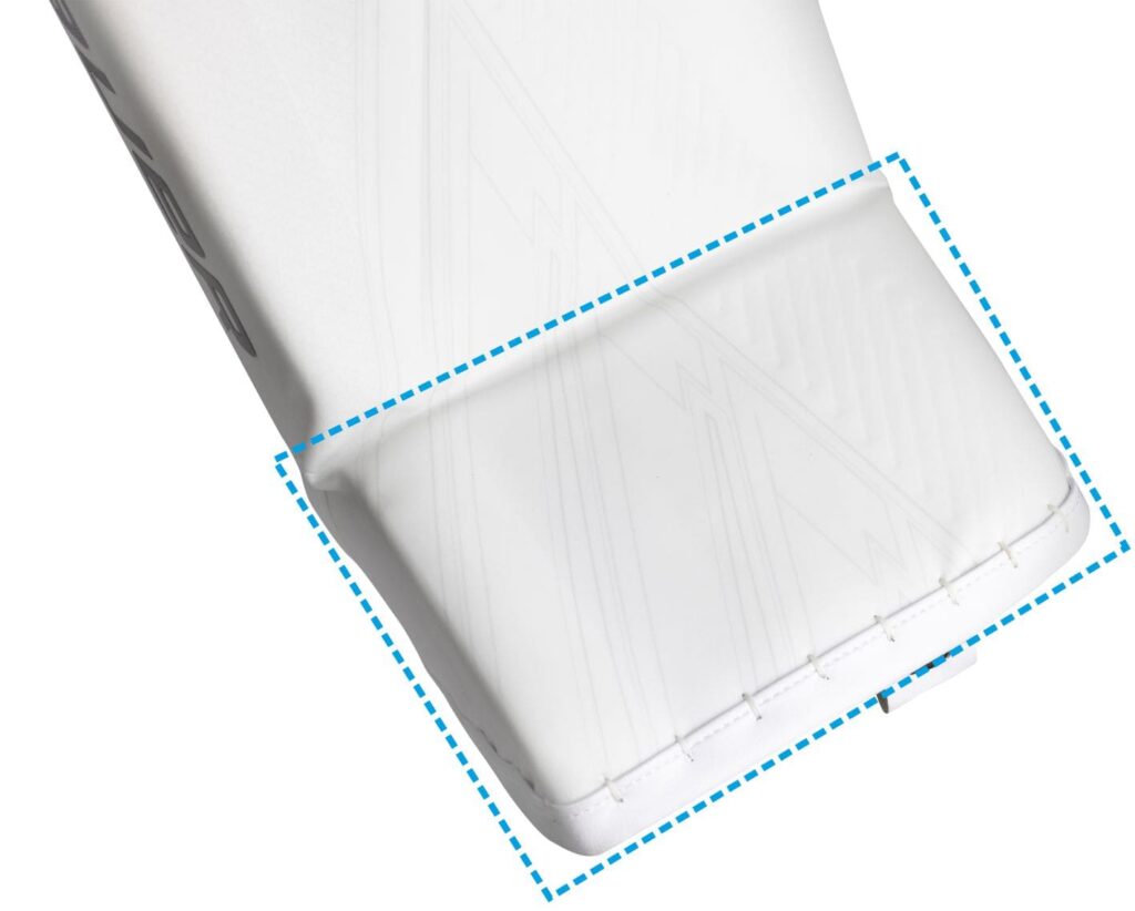 LANDING AREA - Zeskok parkanów– obszar wewnątrz parkanów który w czasie klękania będzie spoczywał na lodzie i przylegał do niego. To na nim bramkarz wykonuje ślizgi.