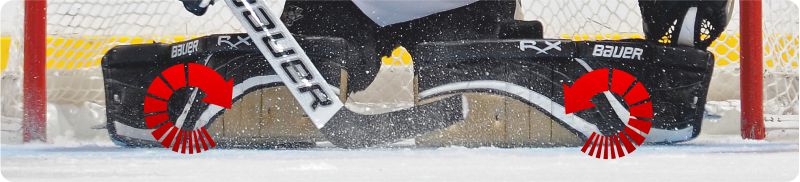 ROTATION - Obrót parkanów (rotacja) – przód parkanów, w czasie gdy bramkarz stoi, zwrócony jest w stronę boiska i grających. Gdy brakarz przyklęka parkany obracają się osiadając na swojej  zewnętrznej, bocznej stronie. Dzięki temu cały czas zwrócone są przodem do gry, powiększając w czasie obrony pozycją "butterfly” i obszar jaki bramkarz chroni.