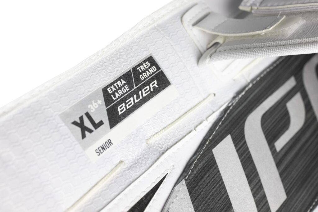 Oznaczenie rozmiarów na parkanach firmy BAUER HOCKEY.