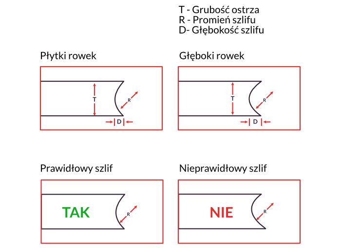 Poniżej zilustrujemy Państwu prawidłowy przekrój rowka jaki powstaje przy ostrzeniu.