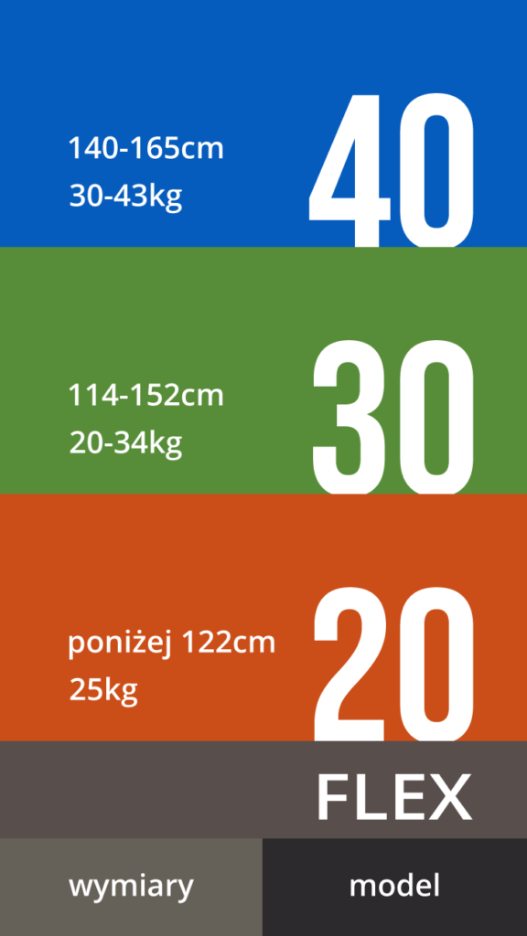 Orientacyjna tabela twardości kijów dla dzieci.