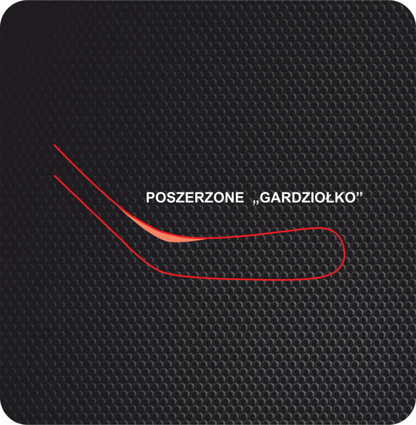 Unikatowy kształt „gardziołka” z poszerzonym materiałem zwiększa stabilność łopatki przy skręcaniu. Jest ona umiejscowiona na łączeniu łopatki z trzonkiem kija. Technologia popularna w kijach firmy BAUER Hockey.