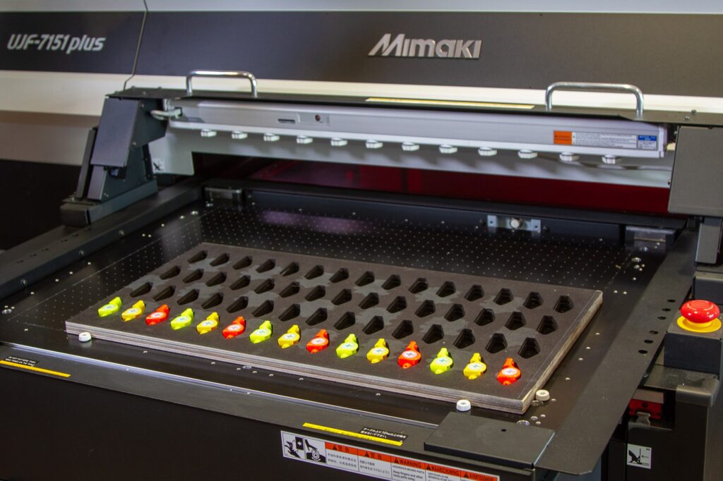 W naszej drukarni posiadamy najwyższej jakości urządzenia UV. Dysponujemy wielozadaniową drukarką szerokoformatowa Mimaki UJF-7151 Plus, która umożliwia druk na różnorodnych materiałach o szerokości 710 mm x wysokości 510 mm i do 153 mm grubości, gdzie nowy system UV-LED steruje mocą lampy i czasem naświetlania, zapewniając tym samym lepszą jakość druku.
