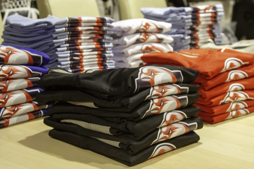 Wykonujemy również nadruk na odzież. Do jej znakowania wykorzystujemy folię Flex. Zazwyczaj tego typu technika ma możliwość cięcia jedynie z jednokolorowej folii, ale my mamy możliwość druku na tego typu materiale w pełnym kolorze. Litery oraz cyfry są przenoszone na materiał przy pomocy wysokiej temperatury – 165 stopni, dzięki czemu otrzymany nadruk jest niezwykle trwały. Projekt przygotowywany jest w formie wektorowej (lub przekształcany do niej z postaci rastrowej), który następnie jest aplikowany na wybrany materiał poprzez wgrzanie w wysokiej temperaturze na prasie. Drukujemy już od jednej sztuki, a każdą koszulkę treningową możecie oznaczyć imieniem, pseudonimem bądź numerem. W naszej drukarni oferujemy m.in. sublimację koszulek sportowych.