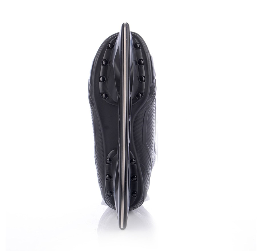 - Dwuczęściowy język ze średnio sztywnym wzmocnieniem wewnętrznym dopasowuje się do podbicia i kostki, zapewniając wygodę oraz stabilność podczas jazdy i gry.